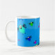 Cute cartoon illustration of a flock of colourful funky looking birds flying in the sky and forming a wallpaper background design. Image available on various gifts and products.