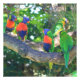 Rainbow lorikeets have to be the little clown of the parrot world. Dressed in bright reds and blues these nectar loving birds are awesome parrots. This design shows a Flock of 8 Rainbow lorikeets gather on a few branches on a tree in the wild. These pretty birds are red oranges, blue, green and yellow. A Flock of Gorgeous birds.
