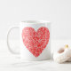 A floral flocked heart design. All the flocking is drawn by hand. The motif is repeated on both sides of the mug. great Valentine gift.