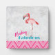 A plaque with a graphic illustration of a pink flamingo. Text says: Flocking Fabulous.