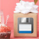 A digital image of an old 3 1/2 inch floppy disc for computers.