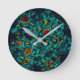 Desenho com fundo escuro semelhante a flores que foi submetida a diversos efeitos gráficos e ficou parecendo algo surreal que lembra algo de vidro de cor azul metálico e de partes douradas e que foram parcialmente trituradas.