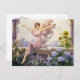 A fine art postcard with the painting, Flora (1913), by the French artist Louise Abbéma (1853-1927). A portrait depicting Flora, who in Roman mythology was the goddess of spring and flowers. She is surrounded by purple hydrangeas, roses and sunflowers.