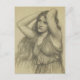 Vintage pencil study of young lady in Renaissance gown pulling her long hair back over her shoulders. Artwork by Victorian era artist John Waterhouse.