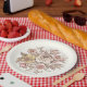 Floraison design on paper plates. Matching napkins, tissue, and wrapping paper