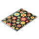 An attractive floral design with colourful stylised flowers on a black background the design also has a subtle paper texture.