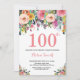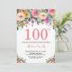 Floral 100th Birthday Invitation Pink