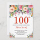 Floral 100th Birthday Invitation for Women. Watercolor Floral Flower. Red, Pink, Yellow, Orange, Purple Flower. Adult Birthday. 30th 40th 50th 60th 70th 80th 90th 100th 13th 15th 16th 18th 20th 21st Any Age. For further customisation, please click the "Customise it" button and use our design tool to modify this template.