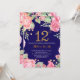 Floral 12th Birthday Gold Glitter Navy Blue Invitation