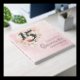 This elegant quinceanera guest book combines modern style with timeless tradition, perfect for capturing cherished memories on your special day. The cover features a bold, eye-catching "15" prominently displayed, symbolising your transition into womanhood. Delicate pink floral accents add a touch of feminine grace, while the contemporary script lends a fresh, stylish appeal. Designed to complement any quinceanera theme, this guest book provides ample space for friends and family to write heartfelt messages, ensuring you'll have a treasured keepsake to reflect on for years to come.