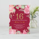 Floral 16th Birthday Invitation for Women. Watercolor Botanical Floral Flower. Gold Glitter. Burgundy Red Background. Pink Peonies Floral Flowers. Kids Girl Lady Birthday. For further customisation, please click the "Customise it" button and use our design tool to modify this template.