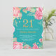 Floral 21st Birthday Gold Glitter and Teal Invitation