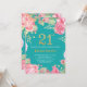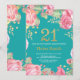 Floral 21st Birthday Invitation for Women. Watercolor Botanical Floral Flower. Gold Glitter. Teal Aqua Turquoise Background. Pink Peonies Floral Flowers. Adult Birthday. For further customisation, please click the "Customise it" button and use our design tool to modify this template.