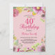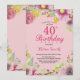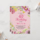 Floral 40th Birthday Invitation for Women. Watercolor Floral, Pink Background. For further customisation, please click the "Customise it" button and use our design tool to modify this template.