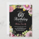 Floral 60th Birthday Invitation for Women. Watercolor Floral, Pink, black chalkboard background. 13th 16th 18th 21st 30th 40th 50th 60th 70th 80th 90th 100th. Any Age. For further customisation, please click the "Customise it" button and use our design tool to modify this template.