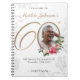 Floral 60th Birthday White Gold Photo Guestbook notebook. A delicate and feminine floral and botanical themed birthday party guestbook. It features beautiful flowers surrounding the photo of the birthday person all with a hint of vintage classiness! Need help with this design? Send the designer a message by clicking on the blue message button below!