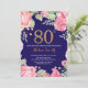 Floral 80th Birthday Gold Glitter Navy Blue Invitation