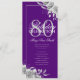 Floral 80th Birthday Program Silver Purple w/ Menu Invitation