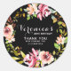 Floral | 80th Birthday Thank You| Black Classic Round Sticker