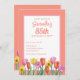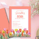 Beautiful watercolor illustration of orange, pink and yellow tulips on a white background for spring themed birthday party.