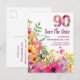 Floral 90th Birthday Save The Date, Elegant 90 Announcement Postcard.