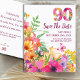 Celebrate a beautiful milestone with this vibrant floral Save the Date for a 90th birthday party. Featuring colourful garden flowers, butterflies, and elegant typography, this customisable design is perfect for announcing a joyful celebration with friends and family.