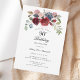 Floral 90th Birthday Burgundy Surprise Party Invitation Postcard you can easily customise for most birthdays by clicking the "Personalise" button. Featuring elegant burgundy, dusty blue, eucalyptus greenery and blush pink flowers with script and modern typography.