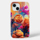 Floral Abstract Art Orange Red Blue Flowers Case-Mate iPhone Case