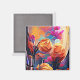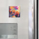 Floral Abstract Art Orange Red Blue Flowers Square Magnet