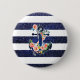 Floral anchor on striped background 6 cm round badge