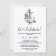 This floral anchor summer let's celebrate invitation card is perfect for a nautical theme event. The design features a beautiful bouquet of blush pink and white summer flowers wrapped around a watercolor boat anchor. This invitation is perfect for an engagement party, bachelorette party, or any event or party.