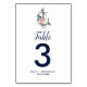 This floral anchor summer table number card is perfect for a nautical theme wedding. The design features a beautiful bouquet of blush pink and white summer flowers wrapped around a watercolor boat anchor. The card prints on the front and back (double-sided). Add each table number that you need to your cart individually.