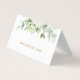 Pretty and chic floral and greenery professional business card features your name in modern gold colour script lettering on a white background and includes a place for your QR code.