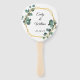 This is elegant leaf and flower wreath design wedding invitation hand fan. This design featuring a delicate wreath of foliage in ivory, mint and gold.