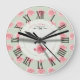 Floral | Antique Pink Roses | Retro Roman Numeral Large Clock