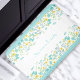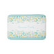 Bath Mat with a watercolor floral border in light turquoise aqua blue and yellow and family name. Easily personalise the text or leave it blank. - Kate Eden Art