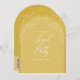 Modern and beautiful way to send invites to friends and loved ones. This wedding invitation is shown in the arch style and features a floral design in gold colours. On the back of the invitation there is a QR code for responses, RSVPs, and more. Customise the text and web address to suit your needs. Use the template to personalise.