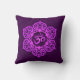 A bright violet Aum symbol sits inside of a stylised lotus flower. The circular pattern is highlighted to create a light shine on the surface which sits on a deep purple background. Six elegant leaves reach out from the centre of the design to create a beautiful symmetrical pattern. This stylish pillow design is a striking representation of this spiritual symbol.
