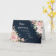 Happy wedding anniversary card for aunt and uncle with elegant blush pink watercolor flowers and navy blue background and heartfelt verse.