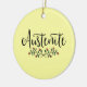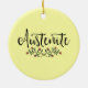 A holiday ornament for book lovers and fans of Jane Austen, this bookish ornament features the word "Austenite" with some flowers underneath it against a light yellow background.
