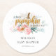 Floral Autumn Fall Pumpkin Baby Shower Round Paper Coaster