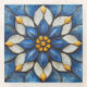 A stunning ceramic tile design inspired by traditional azulejo patterns, featuring intricate blue and white floral motifs accented with vibrant yellow details. This elegant and timeless artwork captures the essence of Mediterranean and Iberian craftsmanship, making it a perfect decorative piece for any space.