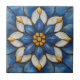 A stunning ceramic tile design inspired by traditional azulejo patterns, featuring intricate blue and white floral motifs accented with vibrant yellow details. This elegant and timeless artwork captures the essence of Mediterranean and Iberian craftsmanship, making it a perfect decorative piece for any space.