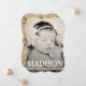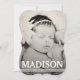 Lovely full bleed Photo Cards with a gorgeous vintage french floral wallpaper pattern back. White Typography overlays the full bleed photograph with your baby girls name'. Add your own baby girl photo quickly and easily just by clicking on the small thumbnail of the sample photograph to then upload your own. You'll see the changes made on screen immediately. The Fabulous Portrait Photography used in this Modern full bleed Photo Template Flat Card is thanks to the talented photographer, Carrie Keller Bitting of the Woven Nest Photography Pty Ltd - North Carolina, USA.
