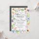 A beautiful baby shower invitation with watercolor white, pink, blue, purple and green flowers and foliage. This invitation includes grey text and is gender neutral.