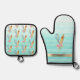 Floral Bakery Tools Mint Green Stripes Oven Mitt & Pot Holder Set