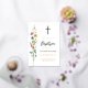 This floral Baptism gold foil invitation features wildflowers and a cross with stylish gold script typography.