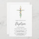This stylish floral Baptism invitation is decorated with a wildflower cross and script typography.