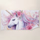 Cute watercolor unicorn with pink flowers, floral decorations.