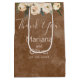 Floral beige blush on brown wedding gift bags for gifts to the bridal party, includes thank you wording.